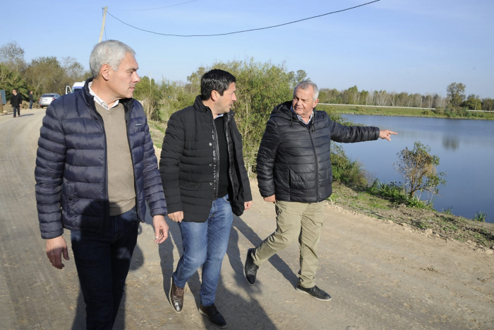 En primer término, los funcionarios se dirigieron hacia el terraplén costero, donde se están realizando trabajos por 114 millones de pesos que benefician a 50.000 vecinos. La obra, que se realiza a raíz de las históricas inundaciones, comprende el relleno y nivelación del terreno con incorporación de suelo.