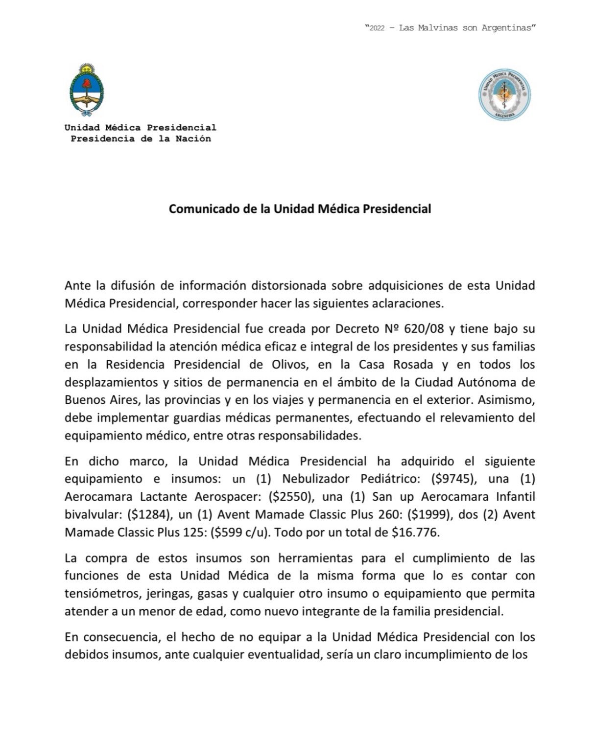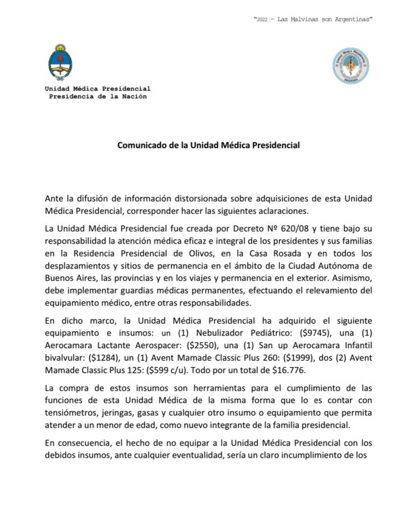 COMPRA DE MAMADERAS Y DEMAS ,LA CASA ROSADA ACLARA EL GASTO DE 16.776 pesos