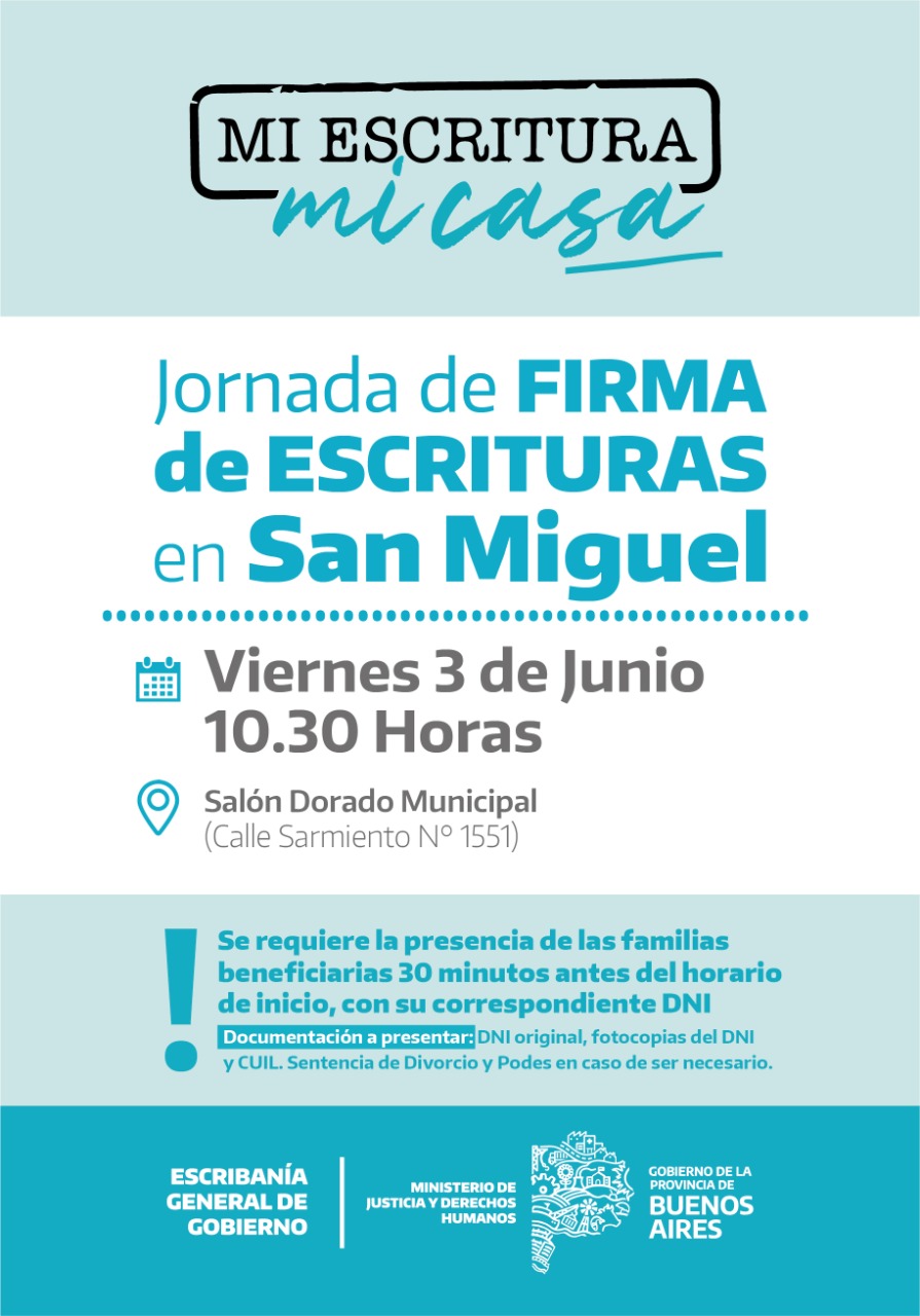 En el marco del programa “Mi escritura, mi casa” implementado por el gobierno de la provincia de Buenos Aires, 130 familias de San Miguel firmarán sus títulos de propiedad.