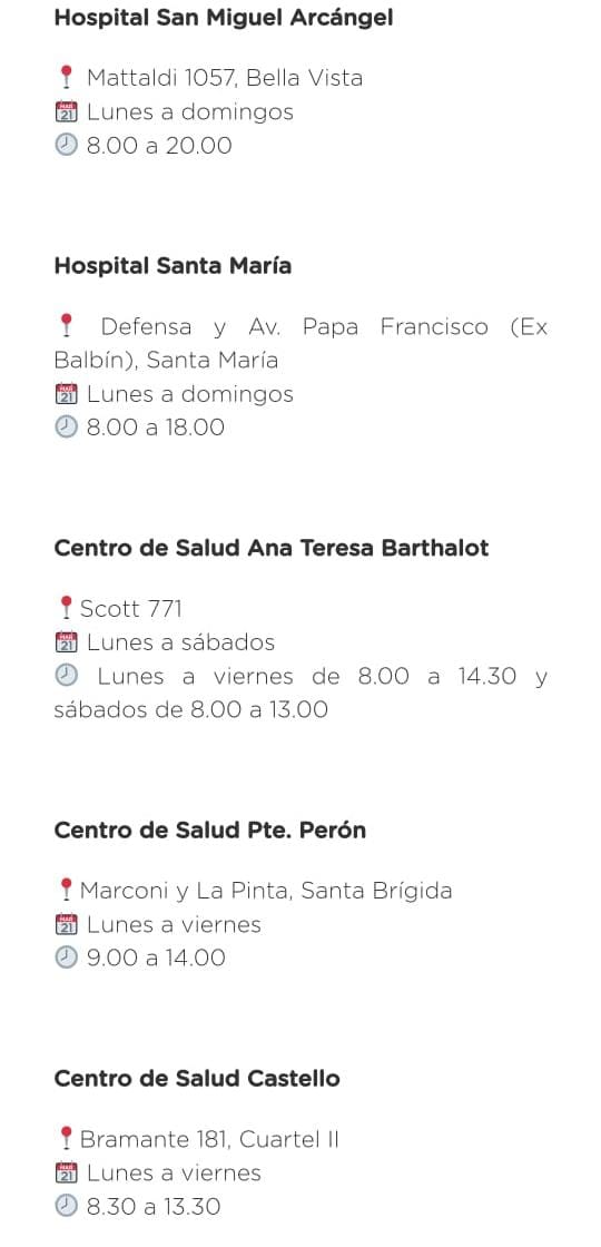 PUNTOS PARA REALIZAR EL HISOPADO Encontrá en la imagen los puntos donde te podés acercar para realizarte el hisopado