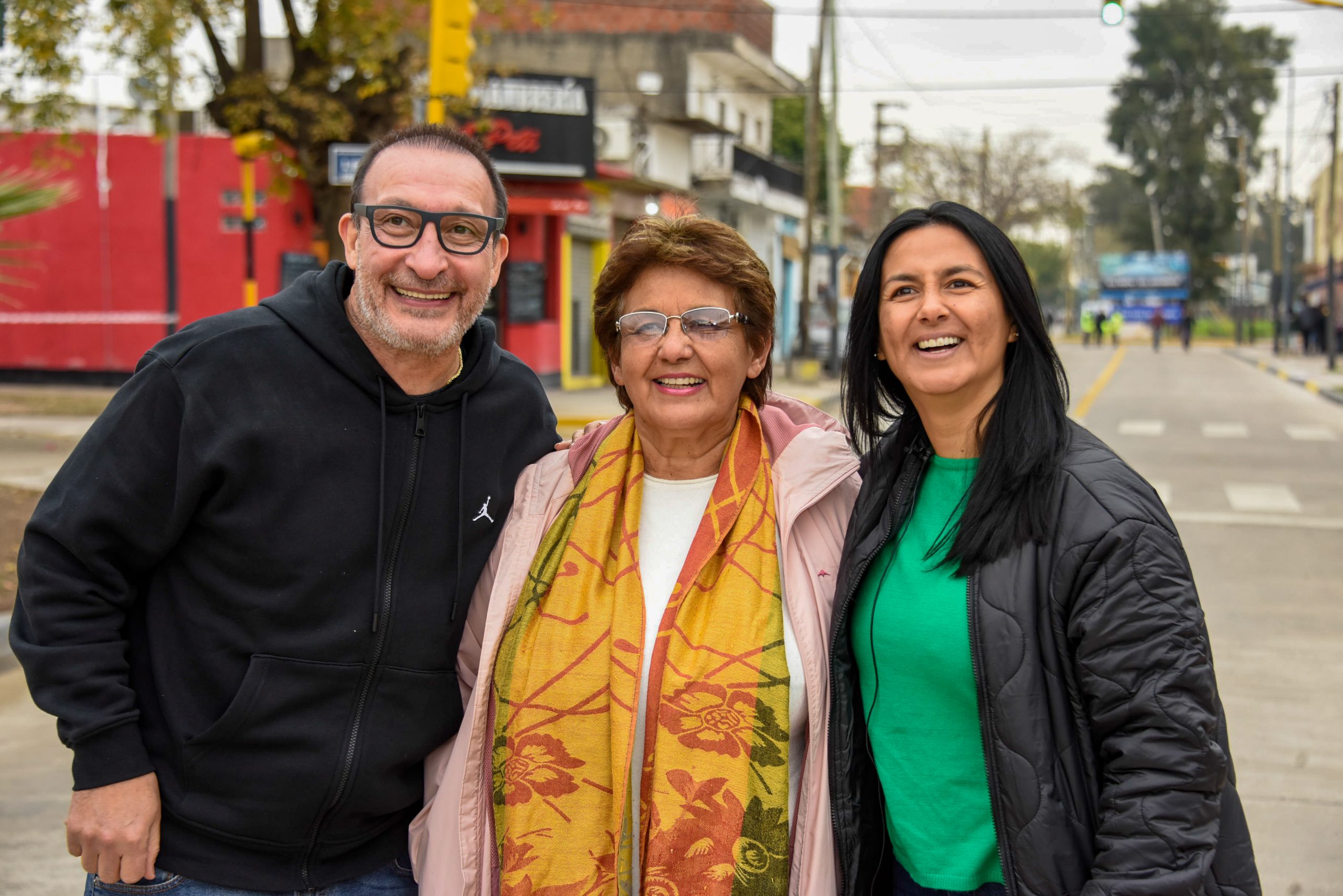 La intendenta interina de Malvinas Argentinas, Noe Correa, junto al ministro de Infraestructura y Servicios Públicos de la provincia de Buenos Aires, Leo Nardini, y al vicepresidente primero del Senado bonaerense, Luis Vivona, inauguraron el tercer tramo de repavimentación de la calle Eva Perón, en la ciudad de Villa de Mayo.