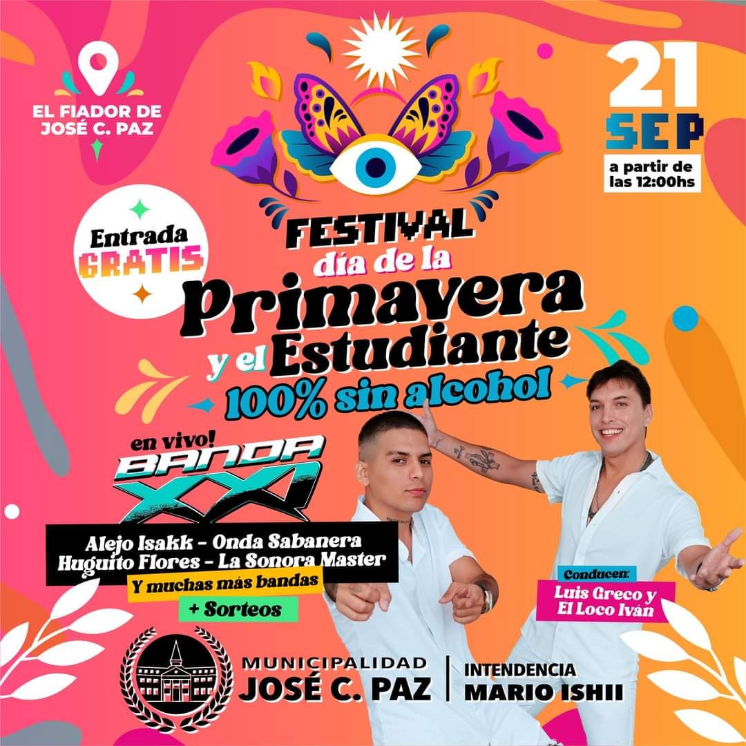 Vuelve el clásico de José C. Paz, como todos los años vamos a festejar la llegada de la primavera y el día del Estudiante, 100% sin alcohol, gratis y para toda la familia en el Fiador! Te esperamos el jueves 21 de septiembre desde las 12hs.