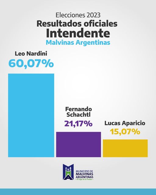 leo nardini : Fuimos la fuerza local que sacó más del 60% de los votos en su tercer mandato consecutivo. Agradecido con todos aquellos que nos dieron la oportunidad nuevamente de seguir proyectando el futuro de Malvinas.