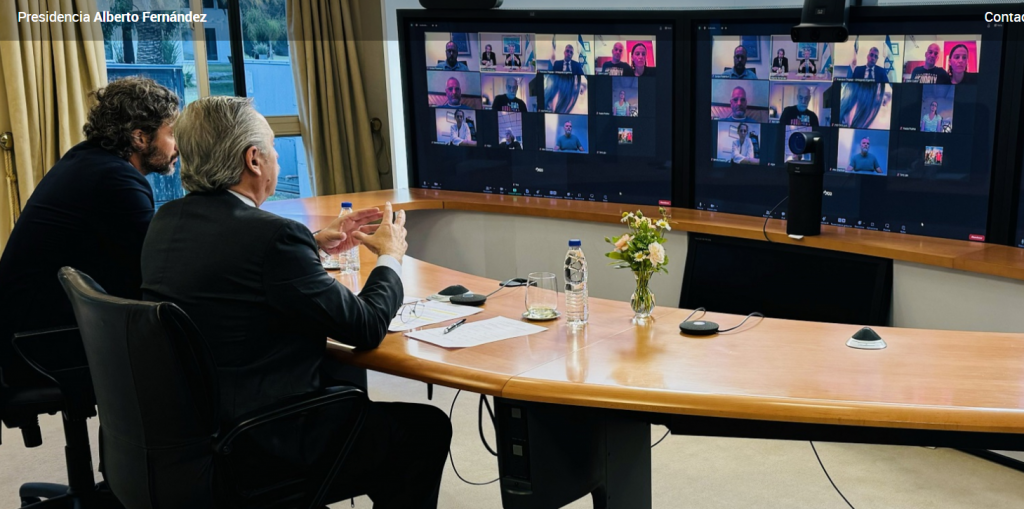 El presidente Alberto Fernández mantuvo esta mañana una nueva reunión desde la Residencia de Olivos con familiares de las y los argentinos secuestrados por el Grupo Hamas, en el marco de la campaña global y de las acciones que lleva adelante el Gobierno nacional con el objetivo de que “sean liberados de manera incondicional e inmediata”.