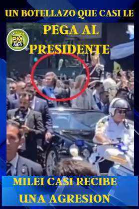 Entre los miles de presentes, un salteño logró filmar el momento en que una persona le arroja al Presidente una botella: pasó muy cerca de la humanidad de los Milei, cruzó el descapotable y terminó impactando en uno de los custodios que iban junto al vehículo.