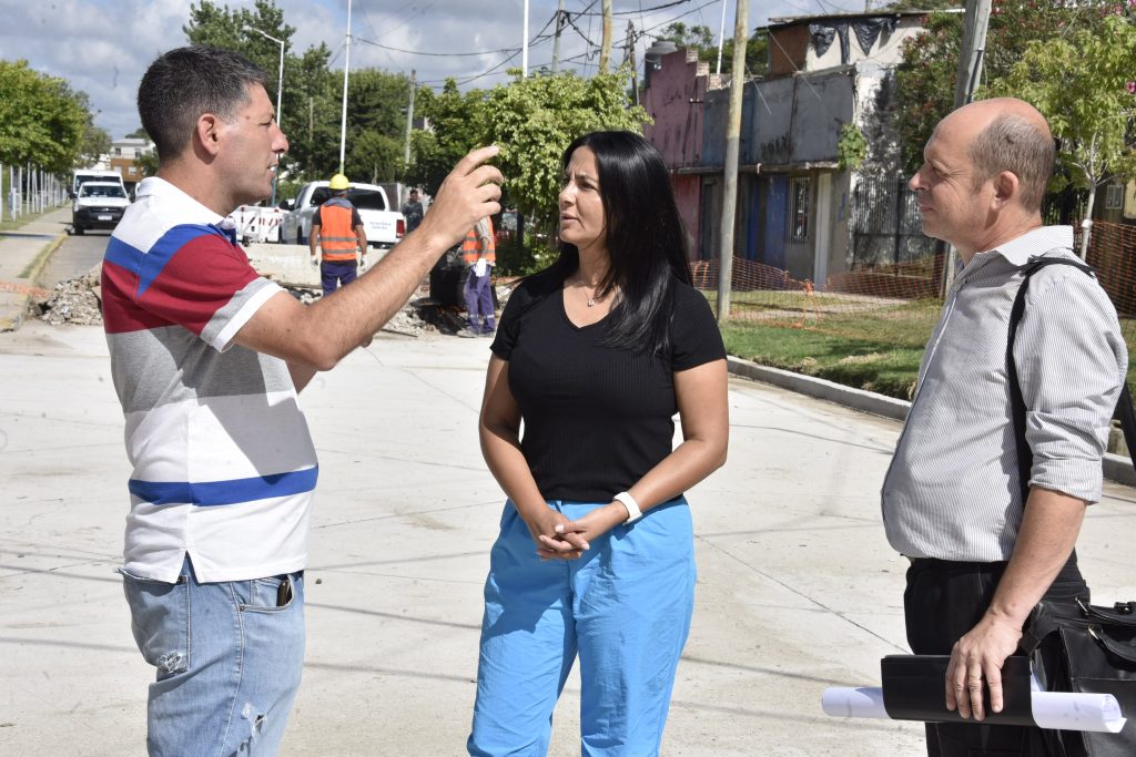 La secretaria general del municipio de Malvinas Argentinas, Noe Correa, visitó la obra de repavimentación de la bocacalle Villa de Mayo esquina Rosario, en la ciudad de Villa de Mayo.