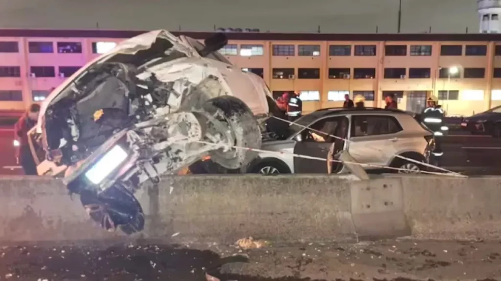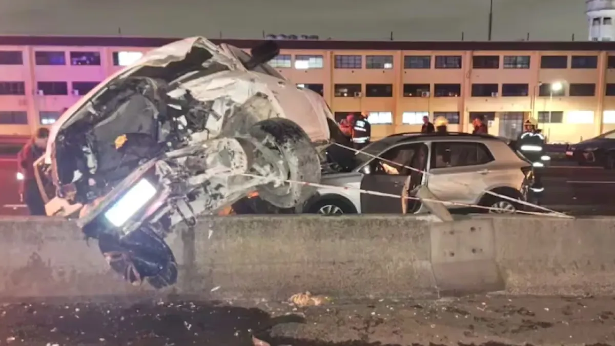 El choque ocurrió este domingo cerca de las 4 de la mañana en la intersección con la calle Emilio Castro a la altura del barrio porteño de Mataderos. En tanto, una Amarok embistió de atrás a una T-Cross y ambas terminaron incrustadas contra el guardarraíl que separa los carriles.