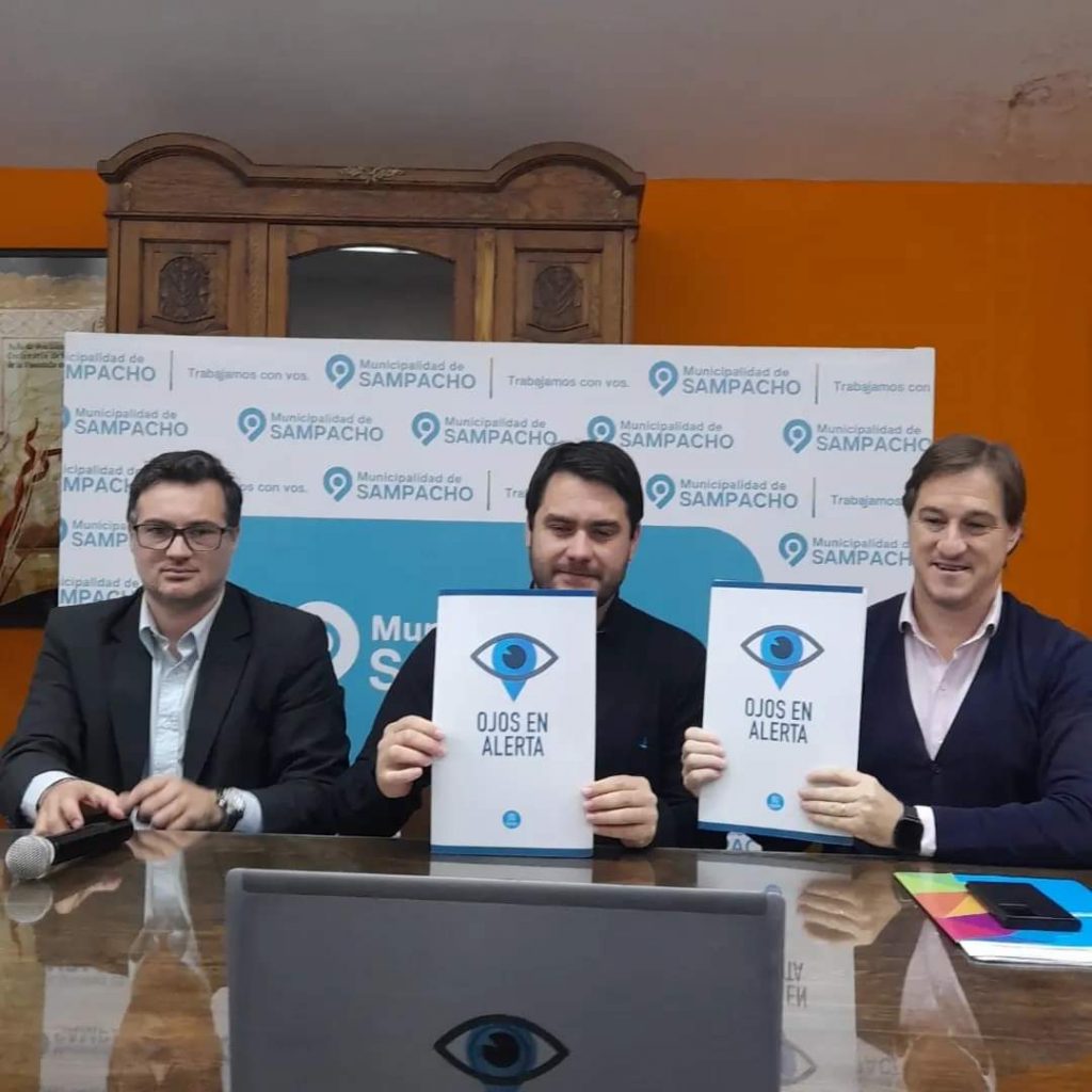 El intendente de San Miguel, Jaime Méndez, firmó ayer un convenio con el jefe comunal de Sampacho (Córdoba), Franco Suárez, para implementar Ojos en Alerta en su distrito.