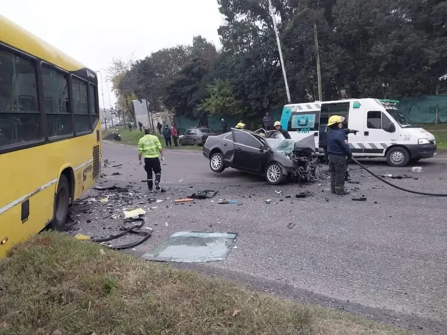 El impacto se produjo en Ruta 202, donde el auto chocó al transporte público a la altura de la llamada “Curva de Lemos”.