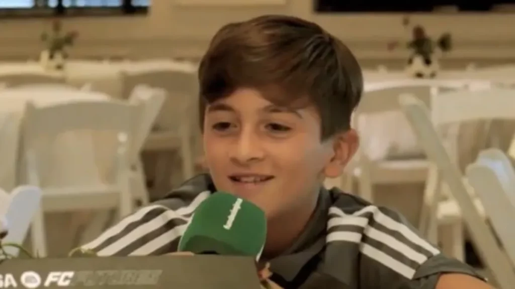“¿Thiago, con qué selección va a jugar?”, le preguntó el conductor español. “Yo quiero jugar con la Selección Argentina”, lanzó, con mucha seguridad, el hijo de La Pulga.