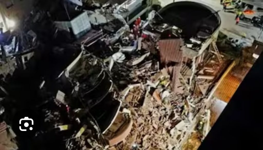 Hugo Piriz, jefe de Bomberos de Villa Gesell : “Estamos trabajando en la remoción de escombros a mano en una zona y estamos en otro lugar en comunicación con una señora que quedó bajo los escombros estamos haciendo lo imposible para sacarla del lugar. Hay otra persona con ella”.