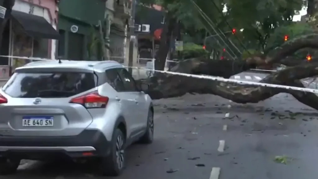 Fuerte temporal de viento y lluvia en el AMBA: árboles caídos, autos aplastados y techos volados