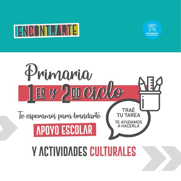 PRIMER Y SEGUNDO CICLO: Actividades deportivas, educativas y culturales. También podés traer tu tarea y te ayudamos a hacerla.
