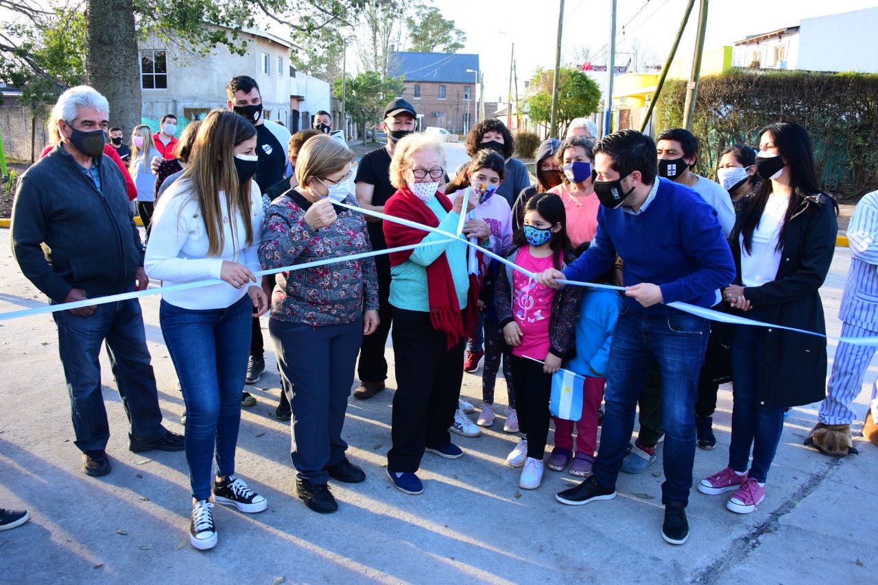 El intendente Leo Nardini inauguró oficialmente el pavimento de la calle Villa de Mayo entre Av. Pte. Perón y Sucre, como también de las calles Cochabamba, Tres Arroyos y Víctor Hugo. El trabajo incluyó obra hidráulica.