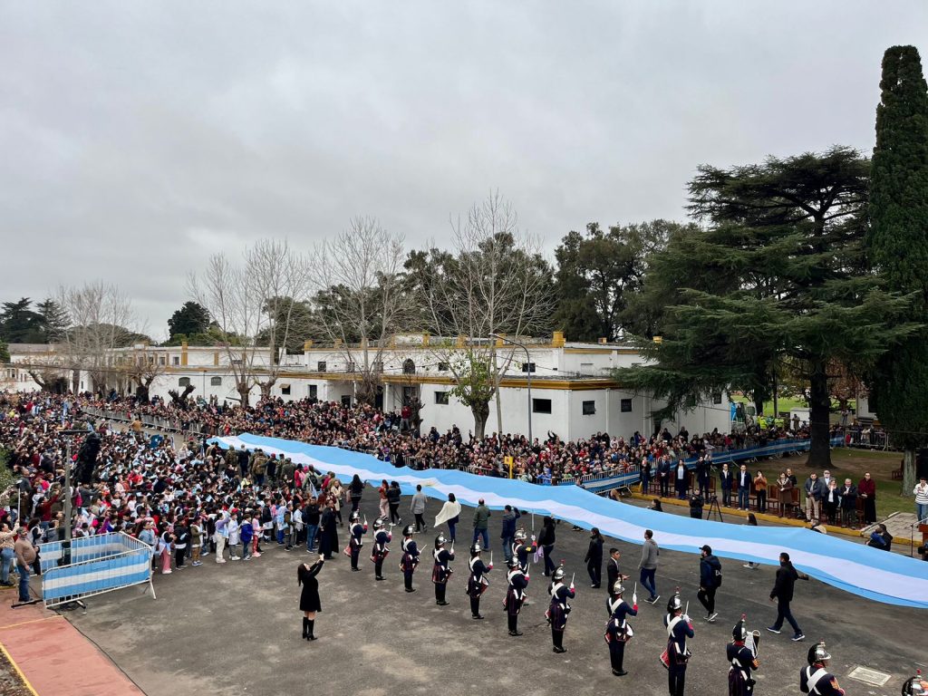 Más de 4.000 alumnos de 4to grado de escuelas de gestión estatal y privada de San Miguel y la región hicieron esta mañana su promesa de lealtad a la bandera nacional en el Regimiento de Artillería 1 “Brigadier General Tomás de Iriarte”, en Campo de Mayo.