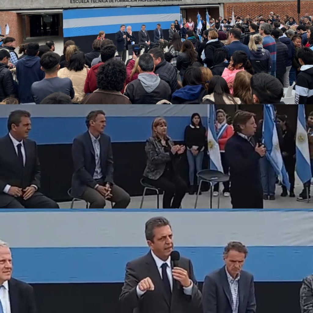 El candidato presidencial por Unión por la Patria, Sergio Massa, realizó la inauguración de una escuela pública en la localidad bonaerense de San Miguel. Allí se pronunció en defensa de la escuela pública y criticó la propuesta educativa de Javier Milei“El derecho a estudiar no se arregla con un voucher”.Junto al ministro de Educación Jaime Perczyk y al intendente local reelecto por mas del 50 % Jaime Mendez, el ministro de Economía enfatizó: “Es muy importante que tengamos claro qué defendemos: la Argentina de la educación pública, gratuita, de calidad inclusiva como línea de largada en igualdad de oportunidades”.